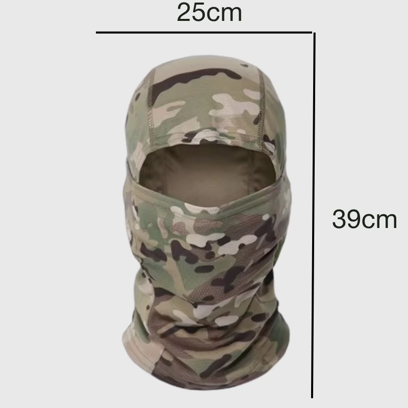 Balaclava ligera y cortavientos de material sintético elástico. Cubre cabeza, cuello y parte del rostro para proteger del viento, frío y polvo durante actividades outdoor, tácticas, trekking y senderismo. ❄️💨🏔️
