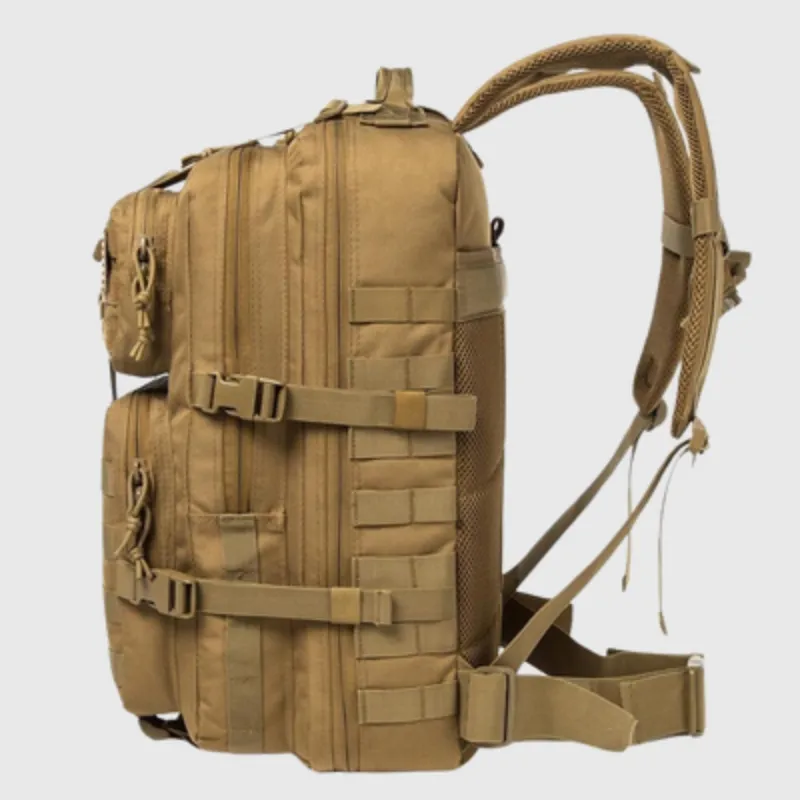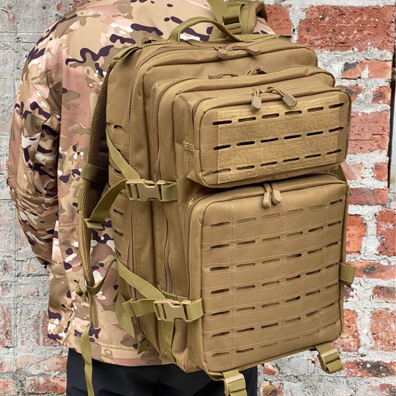 Mochila de gran capacidad (55 litros) con sistema MOLLE corte láser y compartimentos múltiples, diseñada para misiones tácticas, trekking o salidas outdoor prolongadas. Cuenta con porta laptop acolchado, excelente organización interna y estructura ergonómica para máximo rendimiento. 🏕️🪖💻